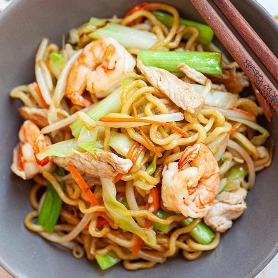 Chow Mien (Egg noodles with chicken, beef, or pork)